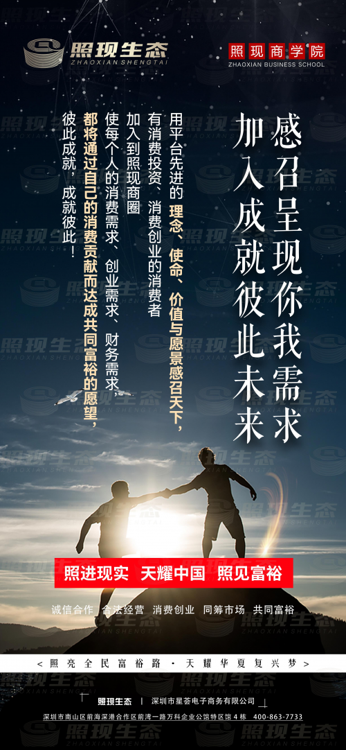 总有人问我你做照现生态️投资多少钱?现在得到了什么??我回答说:我不用投资我只是把以前所需要的衣食住行、柴米油盐的消费,换到了️照现生态商城️,换了个购物APP而已!!!我得到什么呢??1、消费成股东,年年有分红2、美丽在消费中拥有3、投资在消费中完成4、事业在消费中发展5、财富在消费中积累 6、快乐在消费中体验7、能力在消费中提升8、梦想在消费中达成这就是照现生态事业!