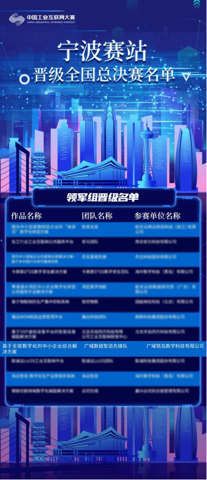 11月17日,中国工业互联网大赛·宁波站比赛落下帷幕,广域铭岛参赛团队从上千支参赛队伍中突围,晋级全国总决赛。