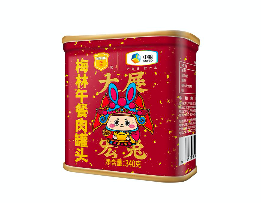 为满足现代人快节奏生活的要求,中粮梅林通过创新生产工艺和真空软包装技术,优化高温高压杀菌参数,研制出带有特色“国潮”口味的小规格单片午餐肉。