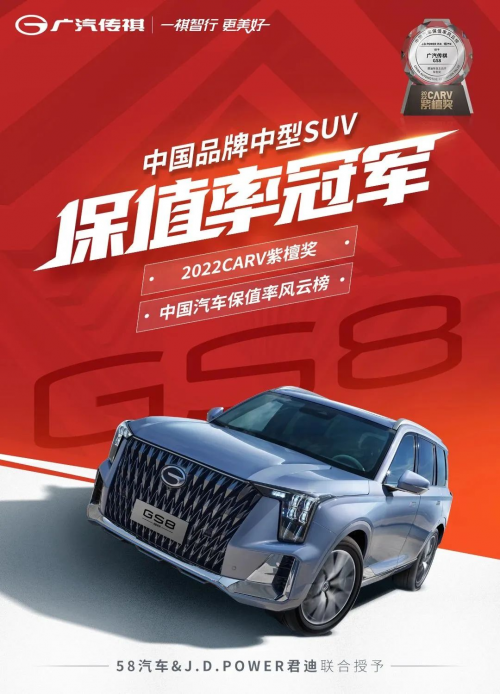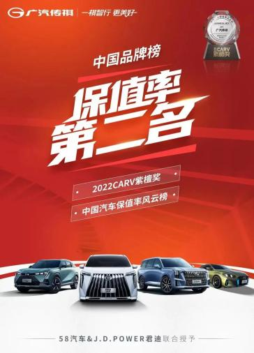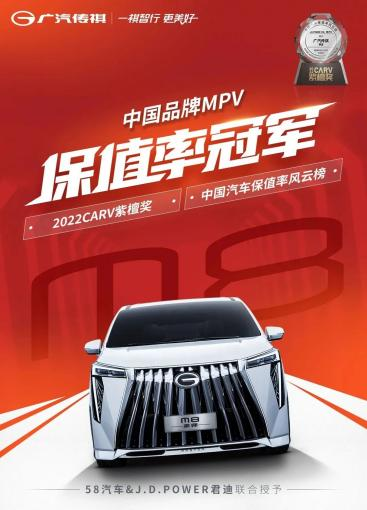此外,在由J.D. Power联合58汽车发布的《2022中国汽车保值率研究报告》中,传祺M8和GS8分获各自细分市场保值率第一,传祺品牌也位居自主品牌前二;在天天拍车联合汽车之家研究院发布的《2022年度中国汽车保值率排行榜》中,传祺M8和传祺M6也分别以三年保值率71.61%和68.92%的成绩包揽榜单冠亚军。