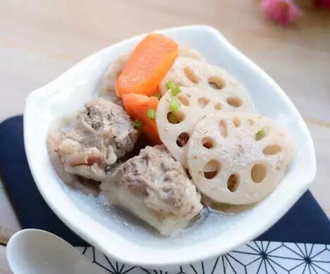 5.把莲藕、排骨及汤汁一起倒进砂锅,再炖30分钟,拣出生姜、香葱不用,放精盐、胡椒、味精即可。