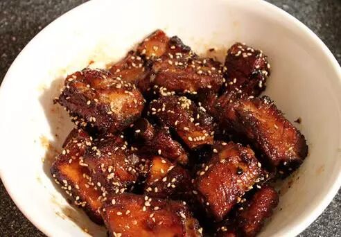 7.收汁过程中加入少许冰糖,汁收干后沿锅边再倒入少许醋。