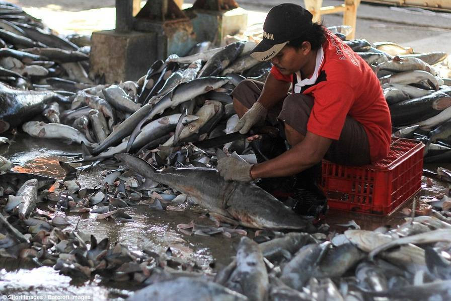 2016年6月23日报道,印尼西爪哇当地的市场中,成千上万的鲨鱼在这里被斩杀,然后主要送入中国市场。在中国,昂贵的鱼翅汤被认为是财富的象征,而一碗鱼翅汤在中国能买到68欧(约500人民币)。