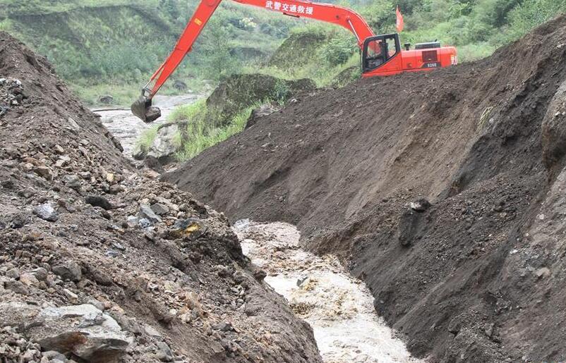 9月8日,救援官兵在操作机械拓宽加固泄洪槽。 9月8日,四川省防汛抗旱指挥部通报,5日因山体滑坡阻断河道形成的北川县都贯河堰塞湖于8日凌晨成功泄流,解除了对沿河低洼地带约2000名群众生命财产的威胁。新华社发