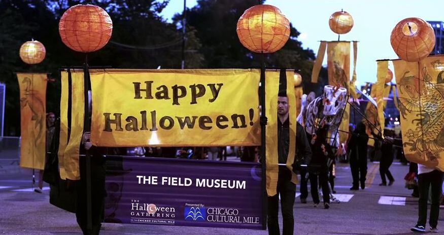10月22日,在美国芝加哥,当地居民参加万圣节游行。芝加哥“文化里程协会”22日在芝加哥市中心的哥伦布大道举行万圣节游行,吸引了成千上万的市民驻足观看。 新华社记者汪平摄
