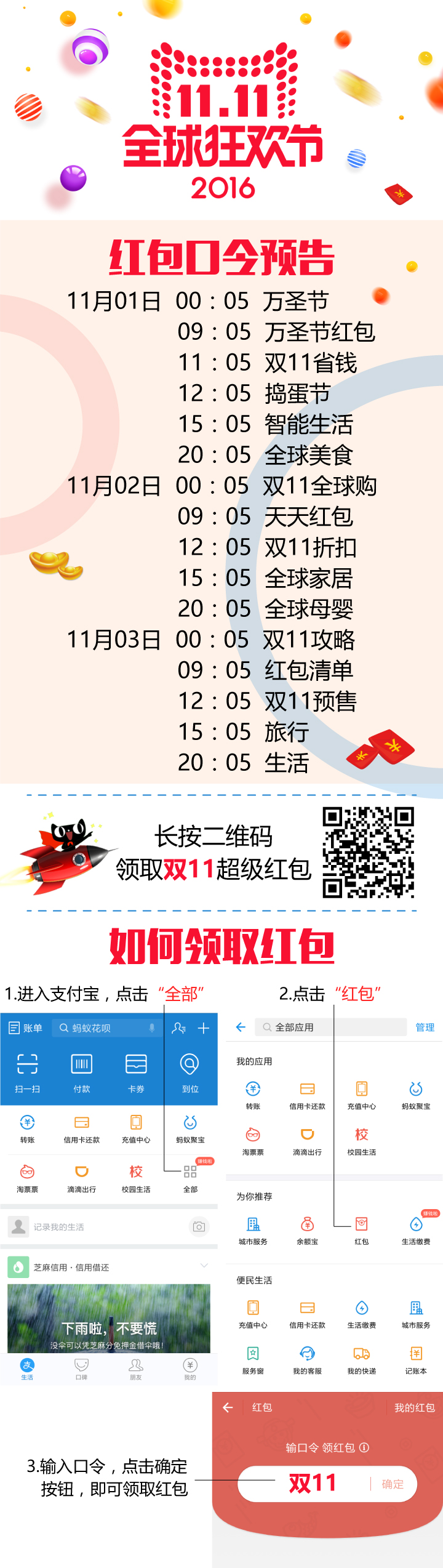 另送双11期间支付宝红包口令清单: