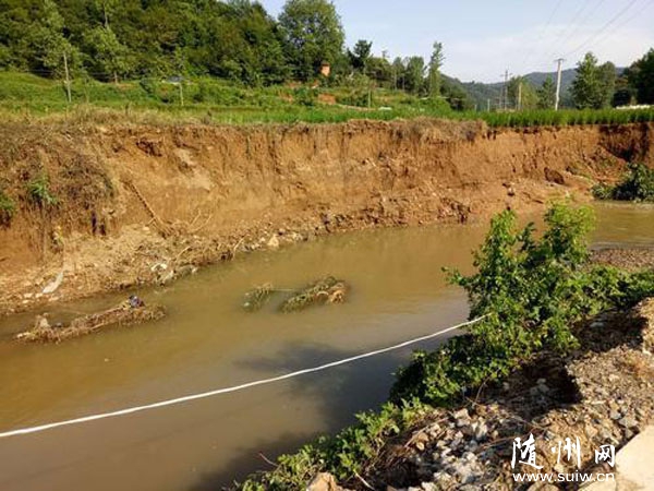 今年7月7日晚8时至8日晚8时,随州市随县三里岗镇突降大雨,局部地区大到暴雨,尚店村降雨量达126.1毫米,该村2015年土地平整项目所施工的部分沟渠、堰塘护坡、道路等被不同程度冲毁,毁坏十分严重,给人民群众的农业生产造成较大影响,当地政府正想方设法恢复水毁工程。图为近日在受灾现场拍摄到的相关情况。 (通讯员陈 萍摄) |