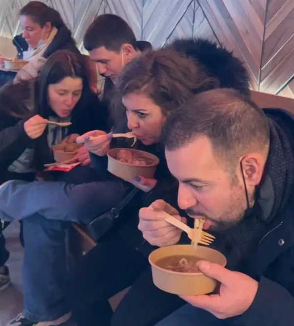 最近两个月,他带着爱人和丈母娘,在巴黎的集市上摆摊卖“功夫刀削面”,有猪肉臊子、红烧牛腩、西红柿鸡蛋三种口味,吸引了不同国家、肤色、年龄的顾客,不少人惊叹“这是在用中国功夫做面条”。