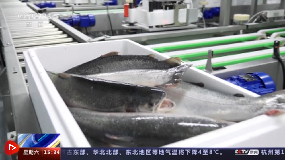 新疆伊犁尼勒克县的三文鱼养殖基地位于天山深处的碧蓝水域,这里配置了很多大型生态环保网箱。工人们正忙着利用自主研发并取得专利的远距离智能投饵系统给鱼儿投喂食物。通过对水温、水溶氧及鱼体总量的统计,这个系统可以科学地计算出投喂量,实现精准投喂,并且极大地节约了人力成本。