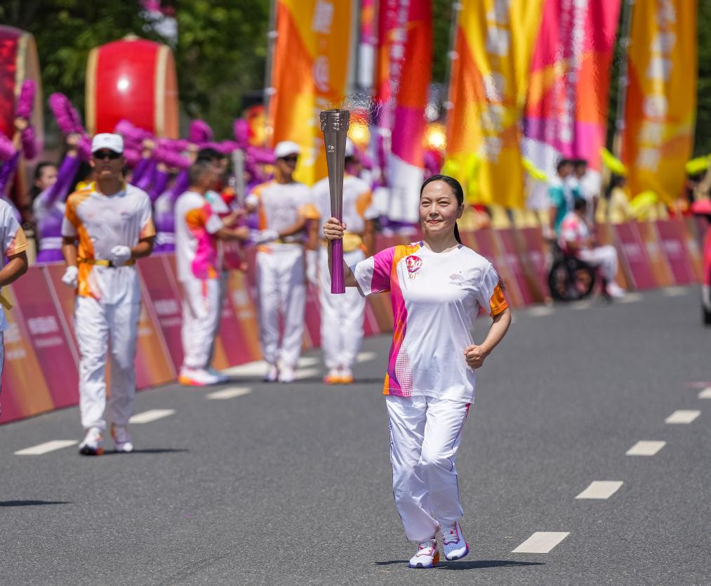 9月17日,陈美兰在火炬传递中。新华社记者 孙非 摄
