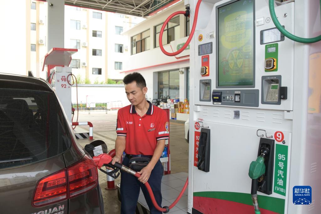 9月20日,云南省蒙自市一加油站工作人员在给汽车加油。新华社发(薛莹莹摄)