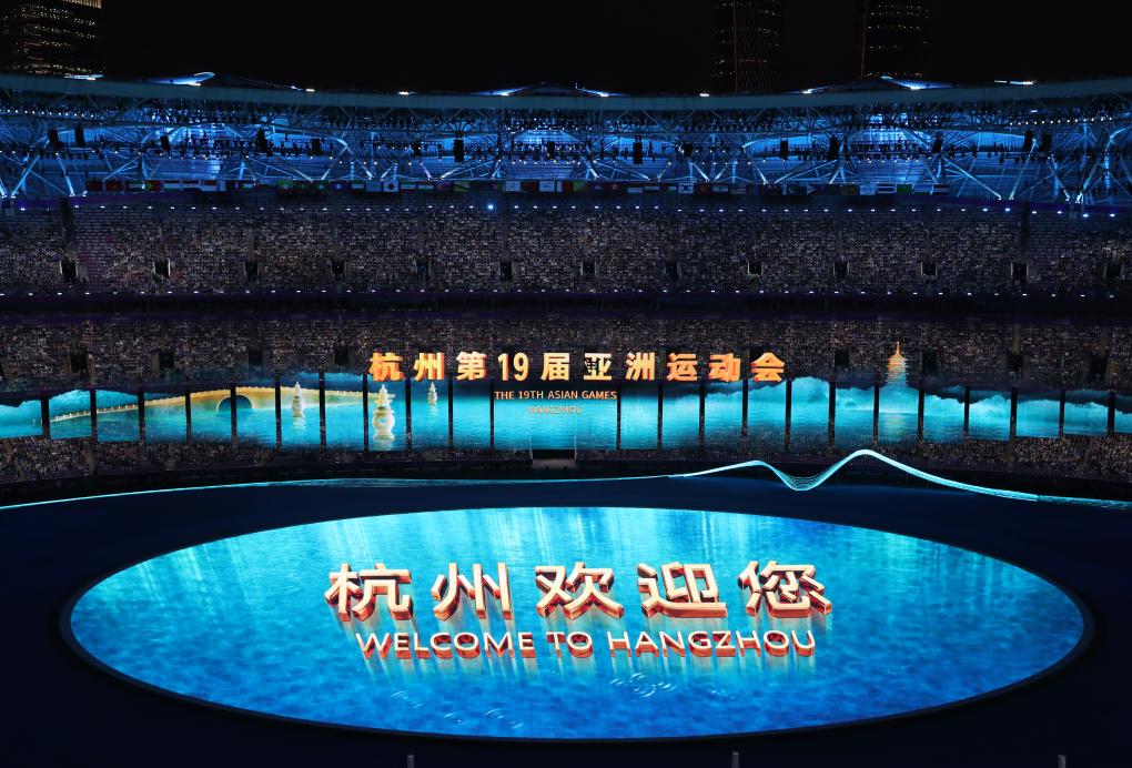 开幕式当晚,“大莲花”造型的杭州奥体中心体育场内,时而呈现轻烟缭绕、水光潋滟的江南画境,时而跃现连通古今的拱宸桥,时而又幻化成钱塘潮涌的水墨画卷……开幕式充满东方美学的巧思,呈现中国文化的丰富内涵。