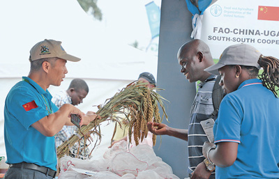 当天,南南合作项目卢韦罗驻点的中国专家讲解了节水抗旱水稻新品种WDR—73:“与传统水稻相比,WDR—73在有水灌溉的高产田可节水50%以上。在低投入情况下,WDR—73也比当地品种高产30%以上。”詹姆斯把专家提到的方法和数据认真地记录下来。“中国专家从我们的实际需要出发,真心实意帮助我们。改良后的新水稻品种将带来更大丰收。”