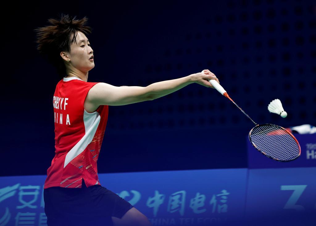 10月6日,在杭州亚运会羽毛球女子单打半决赛中,陈雨菲以2:1战胜日本选手大堀彩,晋级决赛。图为陈雨菲在比赛中。新华社记者 任正来 摄