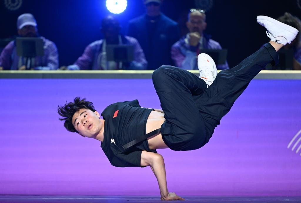 10月6日,杭州亚运会霹雳舞项目开赛。图为亓祥宇在男子个人资格赛中。新华社记者 颜麟蕴 摄
