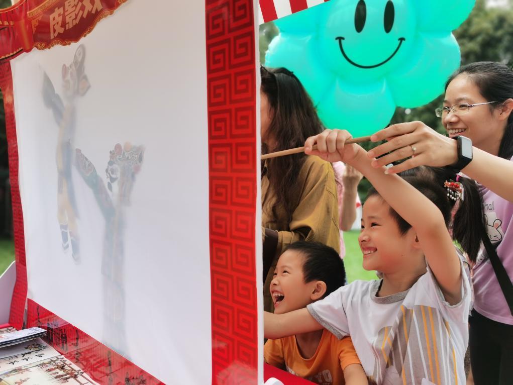 9月29日,在上海桂林公园举办的“唐韵中秋”活动上,孩童体验皮影戏。新华社记者 陈爱平 摄
