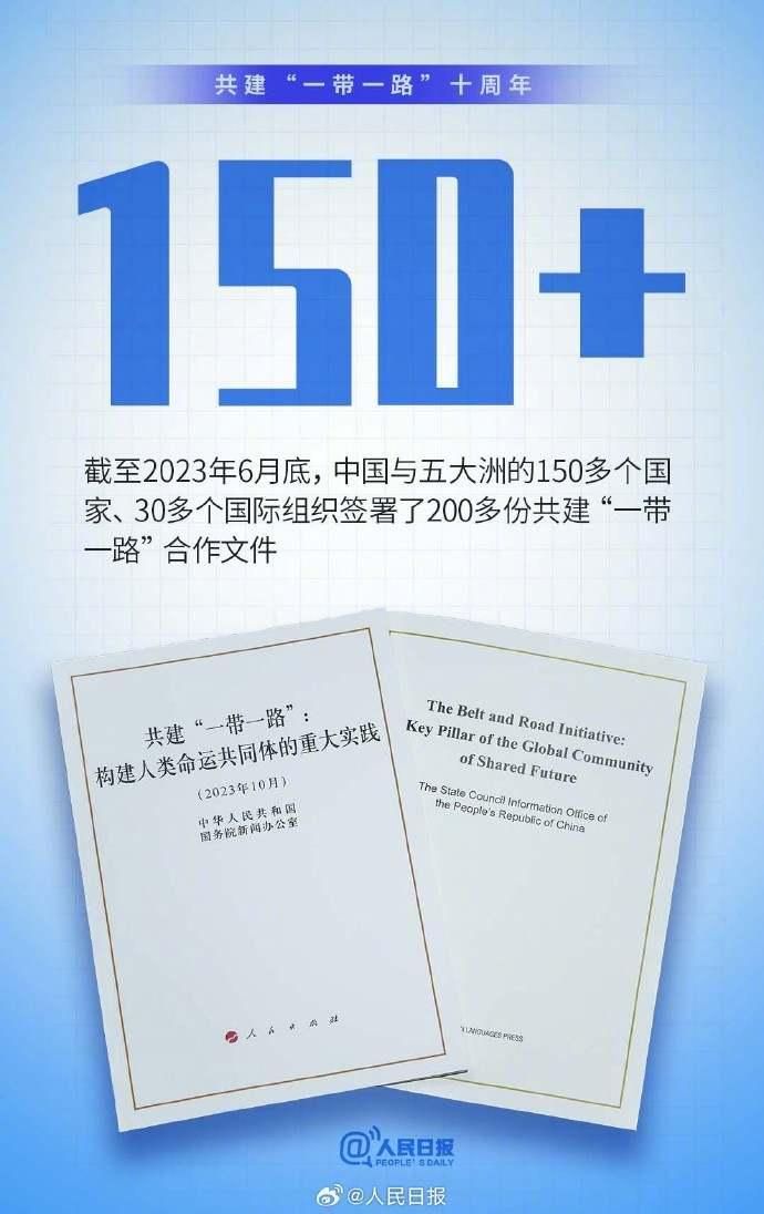 截至今年6月底,中国与150多个国家、30多个国际组织签署了共建“一带一路”合作文件;中欧班列累计开行7.4万列;中国向多国推广示范菌草、杂交水稻等1500多项农业技术…共建“一带一路”倡议提出10周年,一组数字了解一带一路10年来的成果↓↓