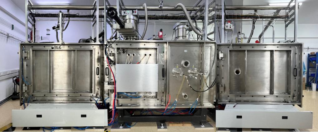 我国自主研制的磁控溅射大面积镀硼专用装置。(受访者供图)