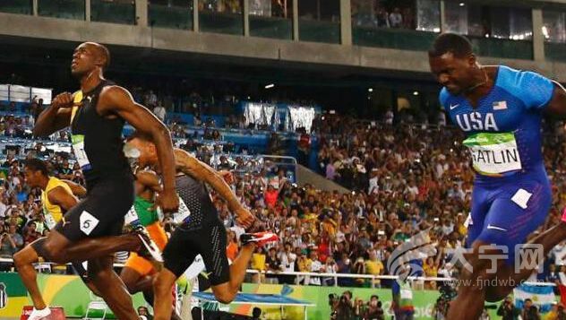 身高腿长的博尔特依旧是起跑被加特林落下,但他中途发力一举超越加特林,并在冲过终点的一刻用“捶胸庆祝”的动作,给世界留下了记录传奇的经典画面。