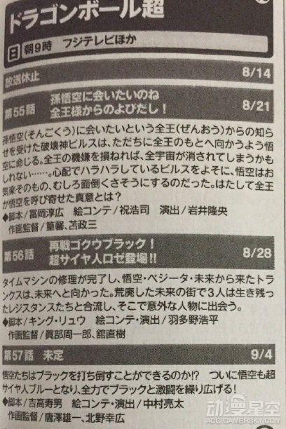 报纸刊载《龙珠:超》动画预告 而在8月28日开播的《龙珠:超》动画第56话里,悟空、贝吉塔和特兰克斯乘坐着修理好的时光机回到了未来。在荒废的街道上,三人与生存下来的反抗军汇合,并遇到了意想不到的人物。